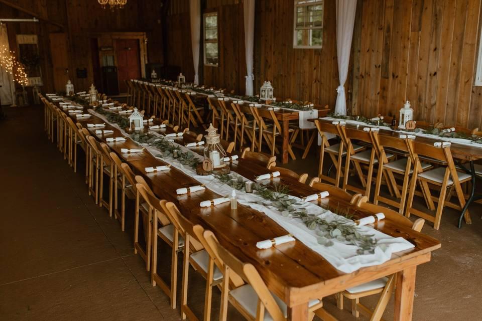 This beautiful venue offers outdoor church pews with a panoramic view of the north Georgia mountains, as well as a rustic barn with ample space for guests.